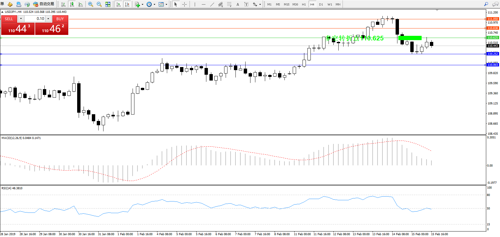 备选策略:110.625上方看涨,目标110.838、111.050