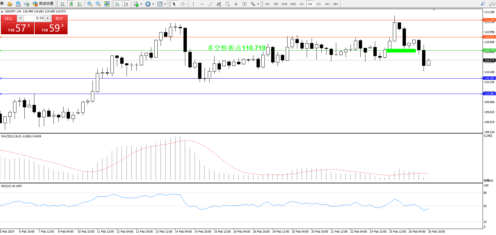 交易策略:110.719下方看跌,目标110.307、110.083