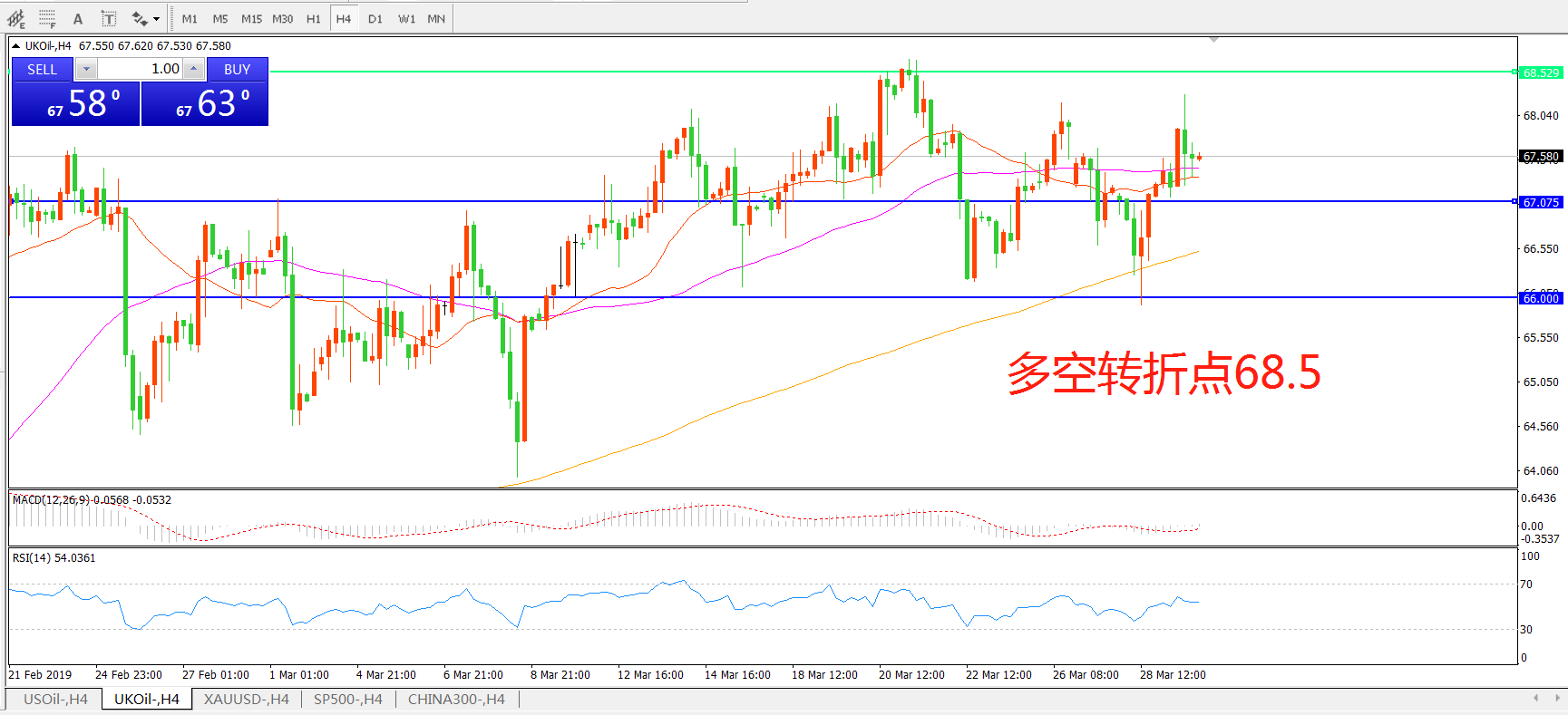 备选策略: 在68.50之下看跌,目标67.00    66.00