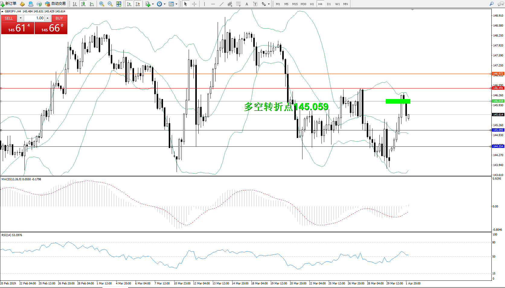 备选策略:145.059上方看涨,目标146.491146.972