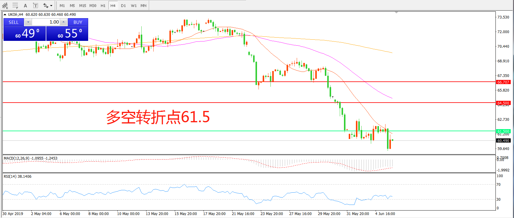 多空转折点:61.50