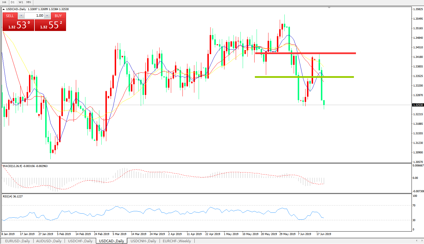 美元兑加元USDCAD 日线图: