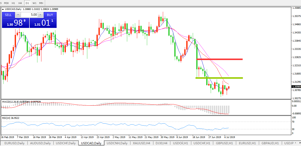 美元兑加元在周一(78)小幅反弹,回到了1.3000-1.3050支撑位的上方。此前,在上周五数据意外显示美国就业市场6月表现远好于加拿大特困状况下,美元兑加元一度跳涨至1.3137高位,但却未能维持 尽管美国6月非农就业数据向好,但是在美国总统特朗普旋即再度向美联储施压,称“降息仍有必要”之后,市场依旧认为美联储在7月底会有100%概率降息,这与加拿大央行透露的稳健政策基调形成了鲜明的反差,这也使得在就业数据影响被消化殆尽后,美元兑加元即重入此前的下行通道