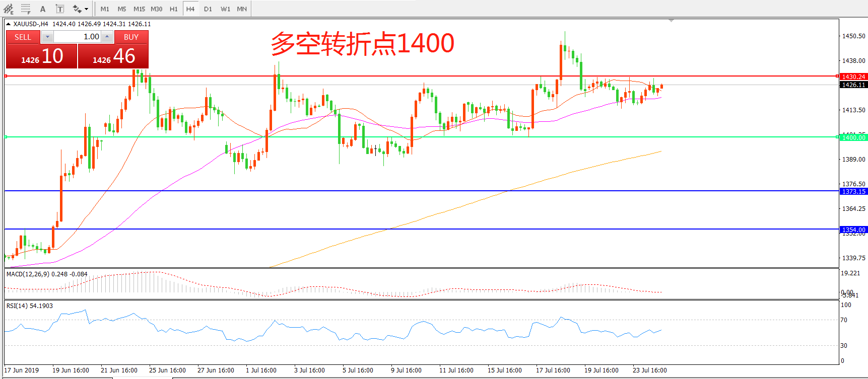 多空转折点:1400.00