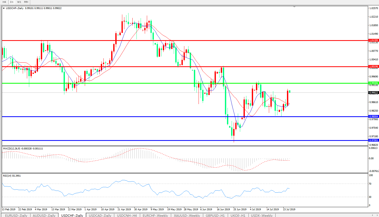 美元兑瑞郎USDCHF   日线图: