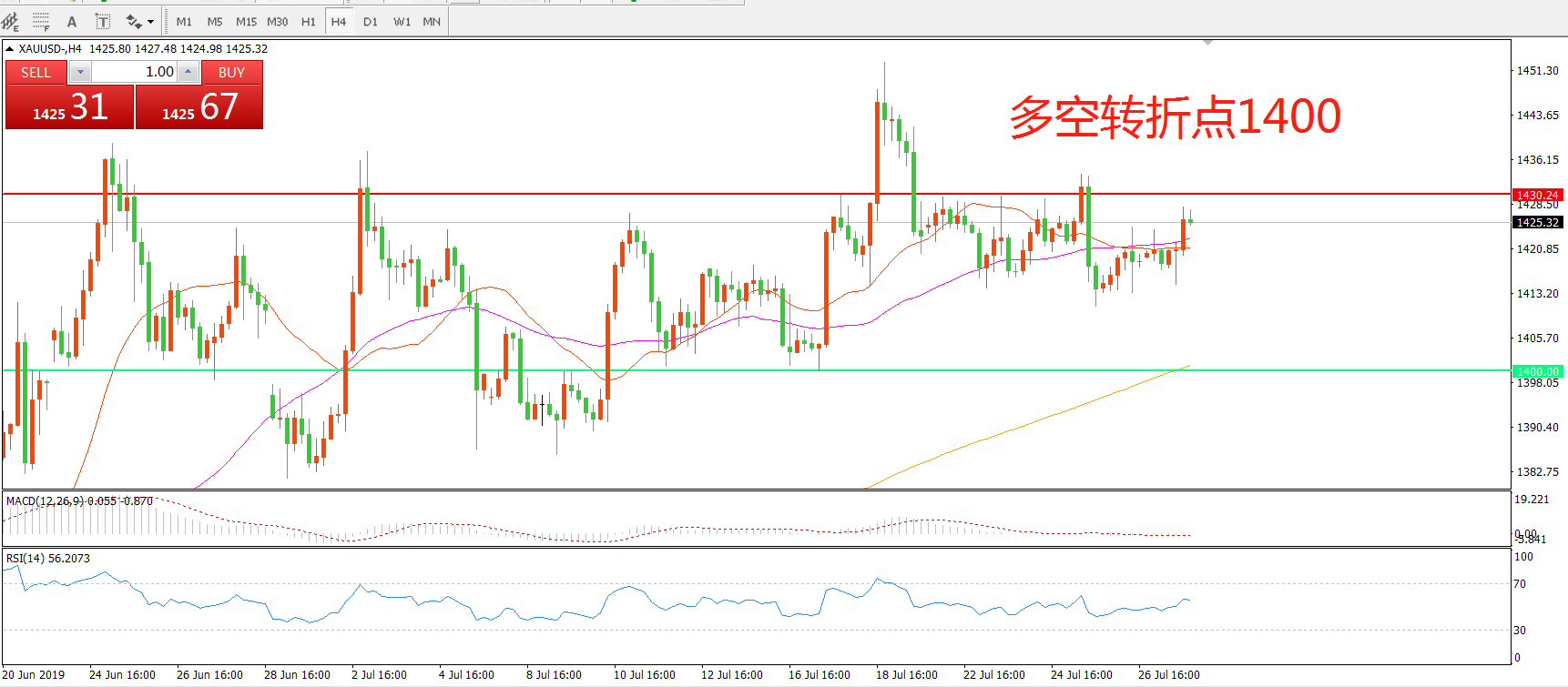 多空转折点:1400.00