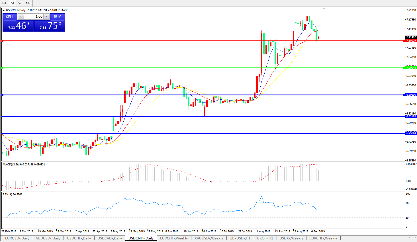 交易策略: 在7.0000之上,看涨,目标价位为7.1000,然后为7.2000。