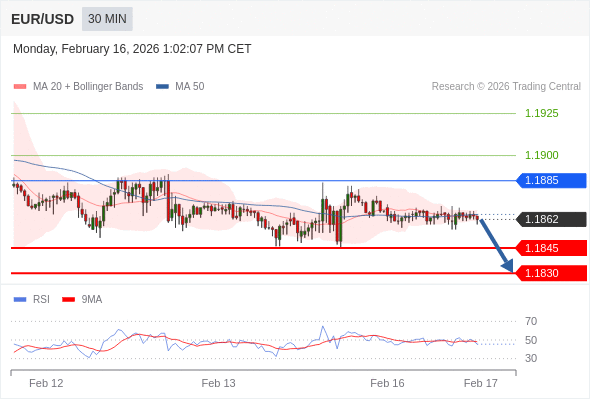 在 1.1885 之下,看跌,目标价位为 1.1845 ,然后为 1.1830 。