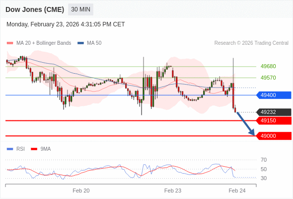 在 49400 之下,看跌,目标价位为 49150 ,然后为 49000 。