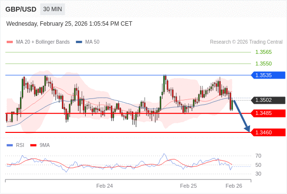 在 1.3535 之下,看跌,目标价位为 1.3485 ,然后为 1.3460 。