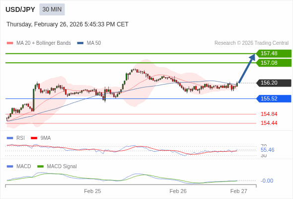 交易策略: 看涨,当 155.52 未被跌破。