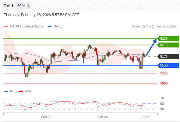 在 5150 之上,看涨,目标价位为 5185 ,然后为 5215 。