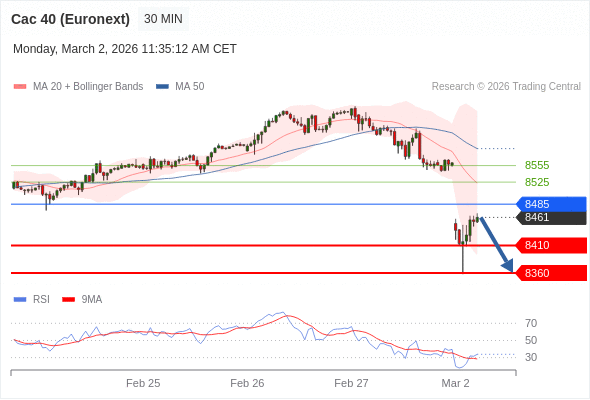 在 8485 之下,看跌,目标价位为 8410 ,然后为 8360 。