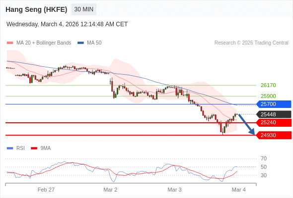 交易策略: 在 25700 之下,看跌,目标价位为 25240 ,然后为 24930 。