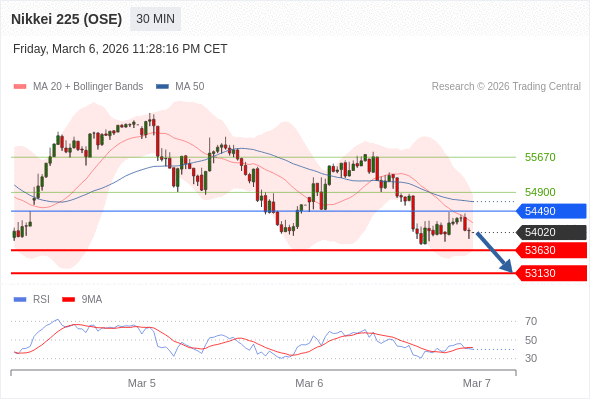 在 54490 之下,看跌,目标价位为 53630 ,然后为 53130 。
