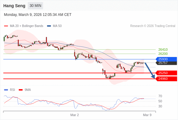 恒生指数 当日内: 短期关键阻力位在25930。