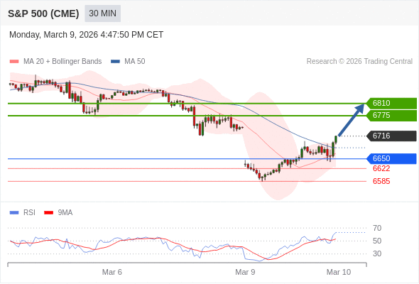 在 6650 之上,看涨,目标价位为 6775 ,然后为 6810 。