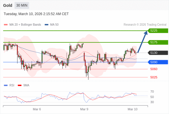黄金现货 当日内: 目标位为5175。