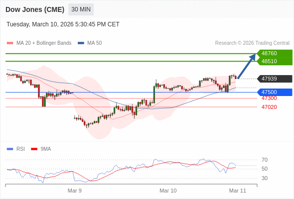 在 47500 之上,看涨,目标价位为 48510 ,然后为 48760 。