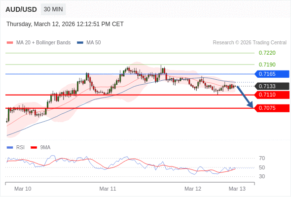 在 0.7165 之下,看跌,目标价位为 0.7110 ,然后为 0.7075 。
