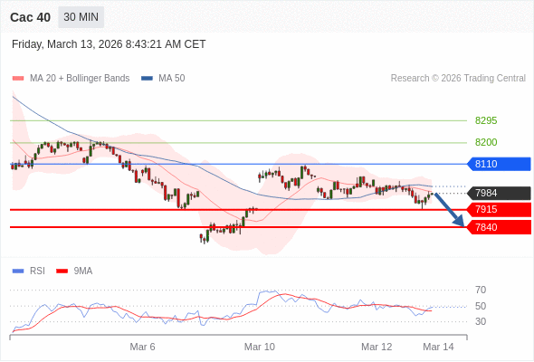 Cac 40 当日内: 谨慎操作。