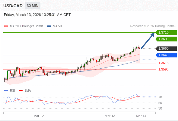 在 1.3640 之上,看涨,目标价位为 1.3690 ,然后为 1.3710 。