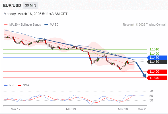 在 1.1470 之下,看跌,目标价位为 1.1400 ,然后为 1.1370 。