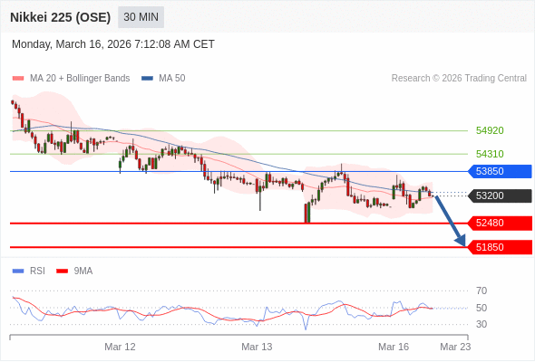 日经225股指期货 (OSE) 当日内: 短期关键阻力位在53850。
