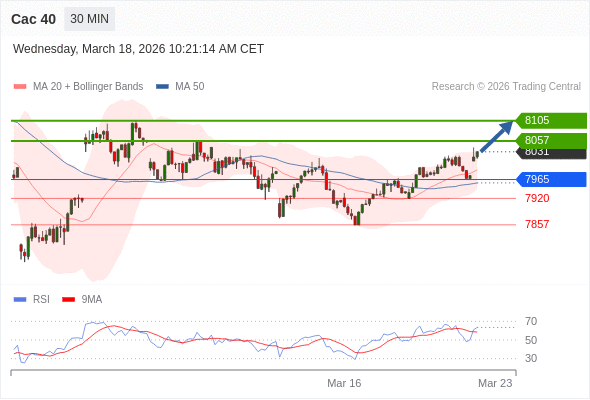 在 7965 之上,看涨,目标价位为 8057 ,然后为 8105 。