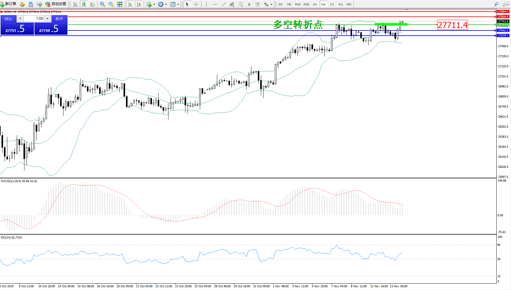 交易策略:27711上方看涨,目标27804、27864