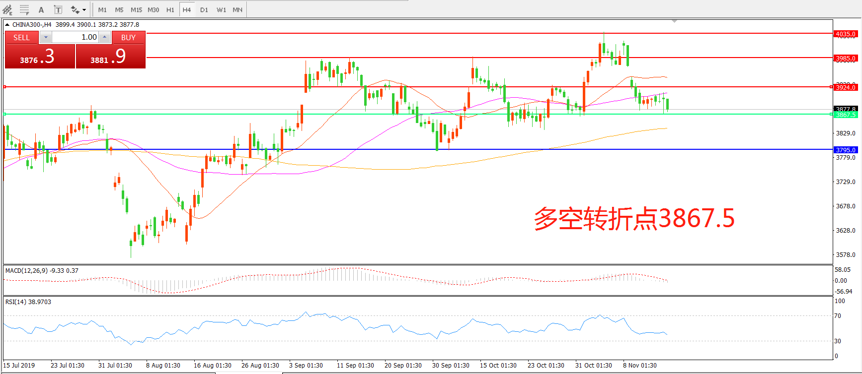 多空转折点:3867.50