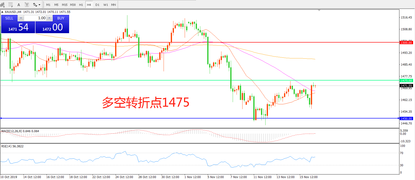 多空转折点:1475.00