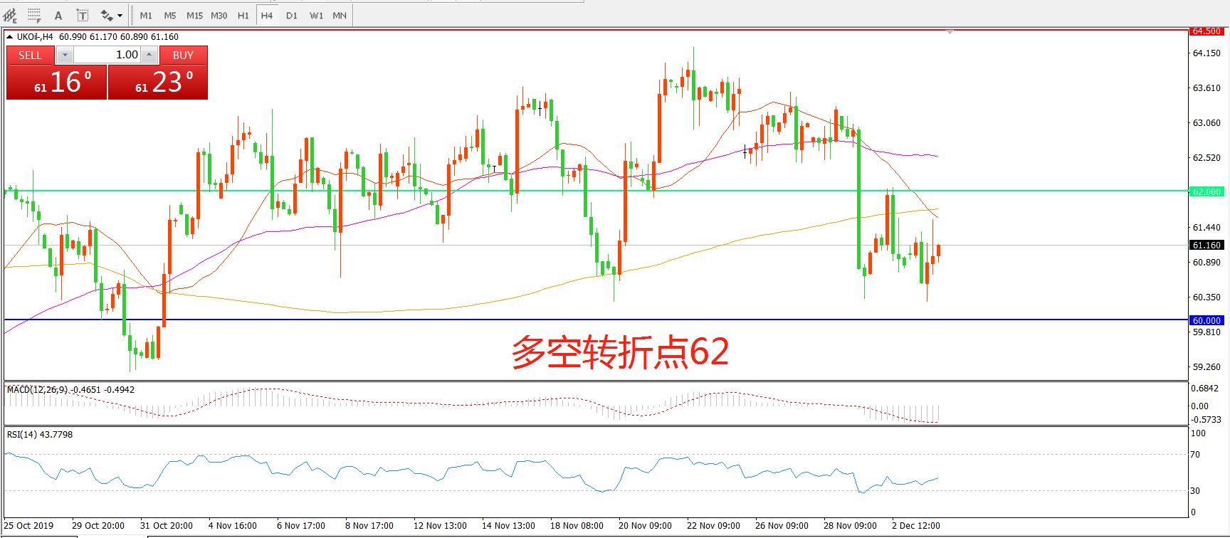 交易策略:在62.00之下看跌,目标60.00 57.50