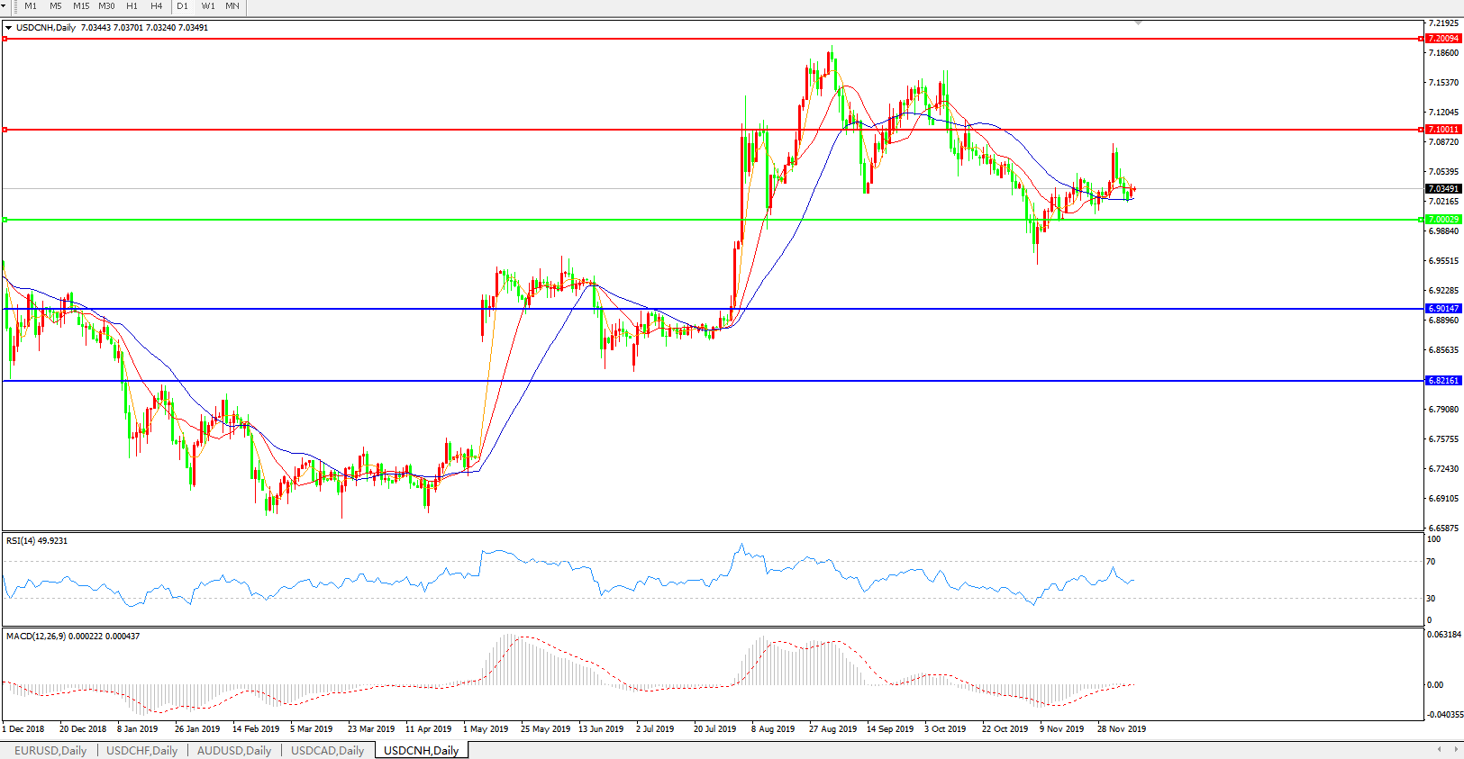 美元兑人民币USDCNH    日线图: