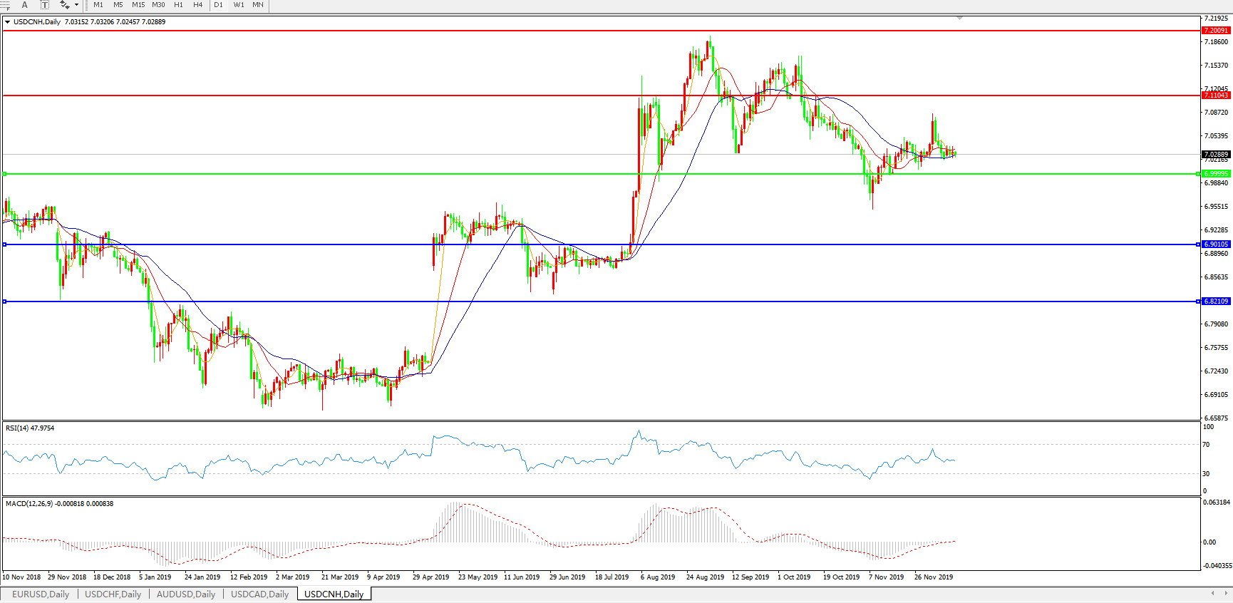 美元兑人民币USDCNH    日线图: