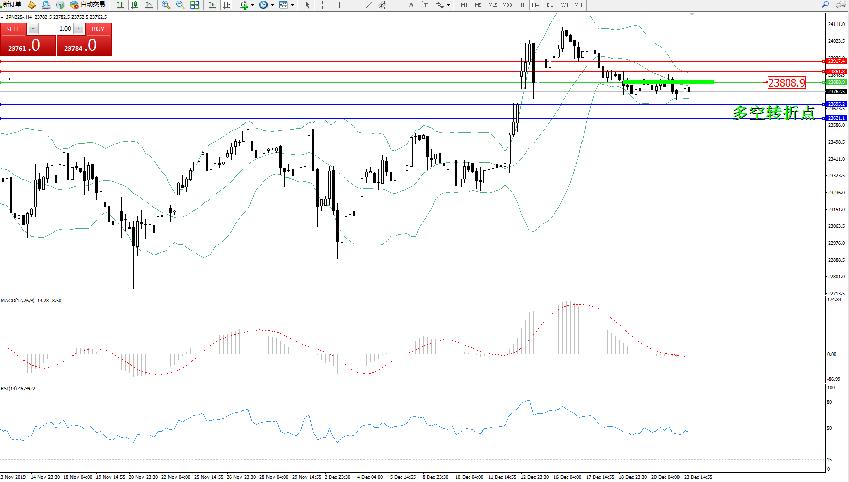 交易策略:23808下方看跌,目标23695、23621