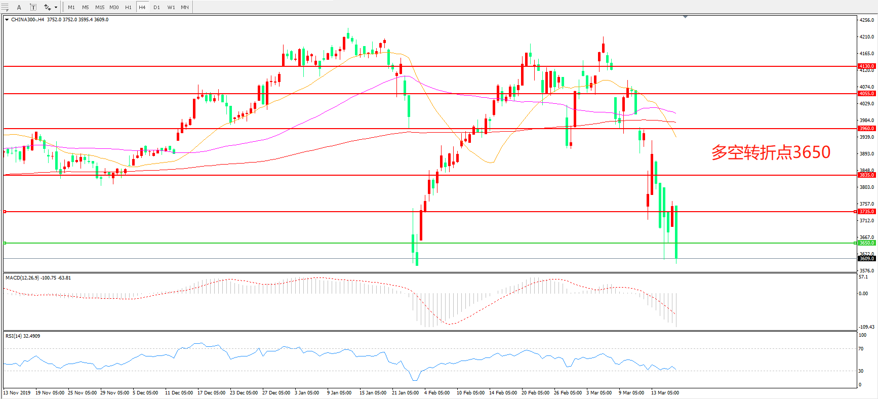 沪深300  CHINA 300   4小时图