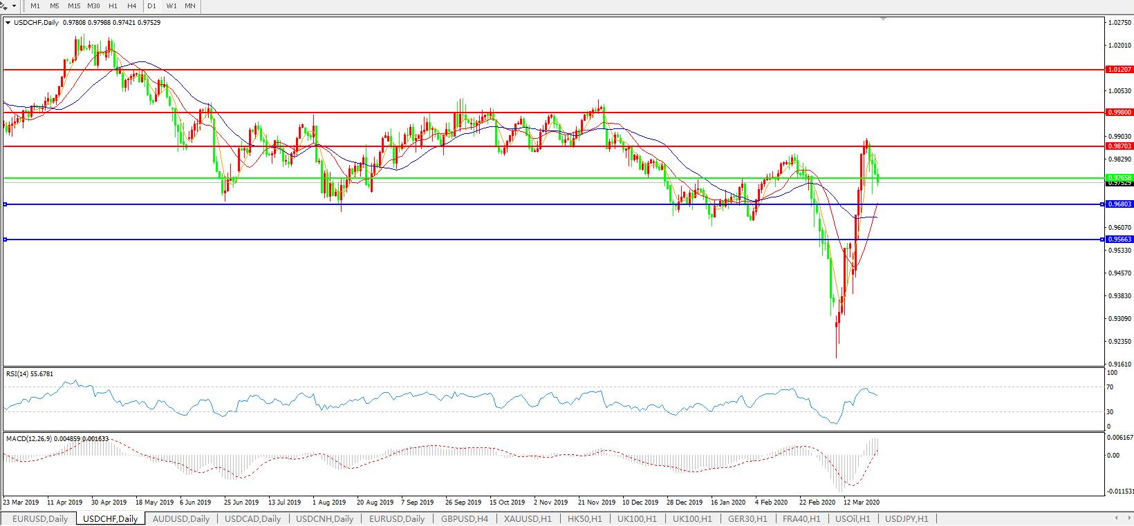 美元兑瑞郎USDCHF 日线图: