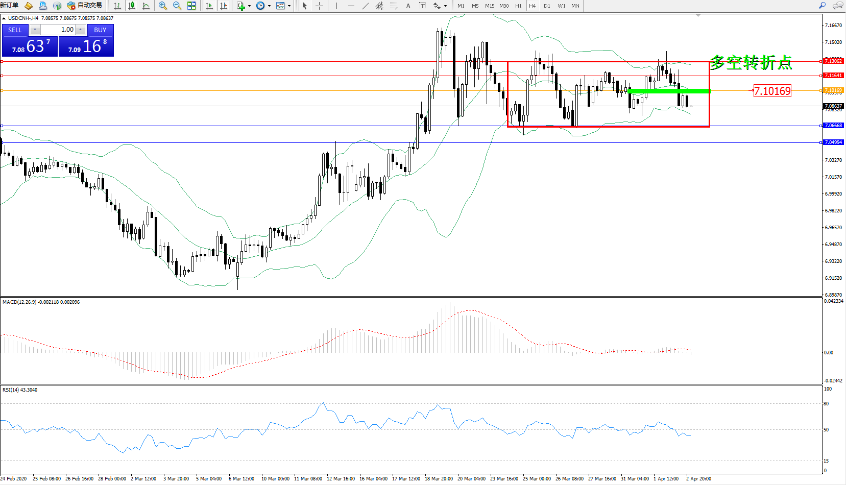 交易策略:7.10169下方看跌,目标7.066687.04994