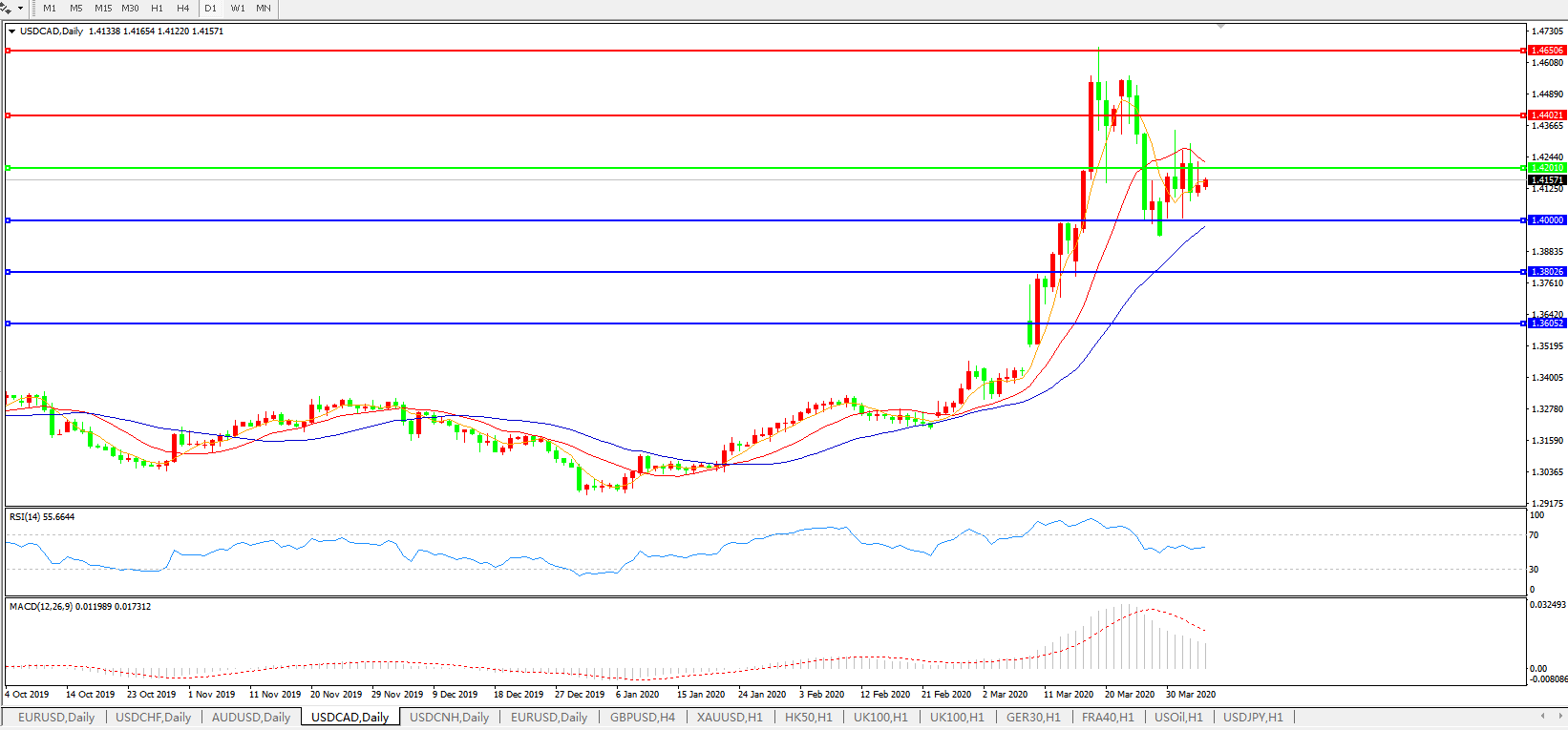 备选策略: 在1.4200之下,看跌,目标价位为1.4000、1.3800