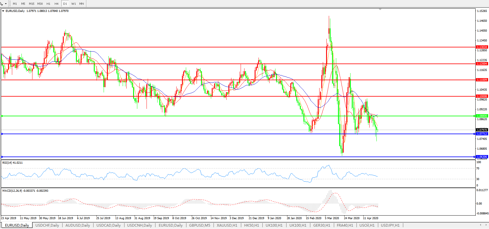 欧元兑美元EURUSD 日线图: