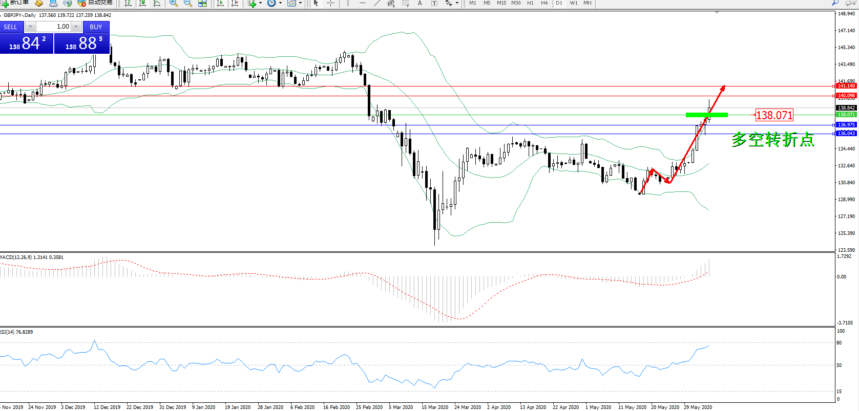 交易策略:138.071上方看涨,目标140.098、141.140