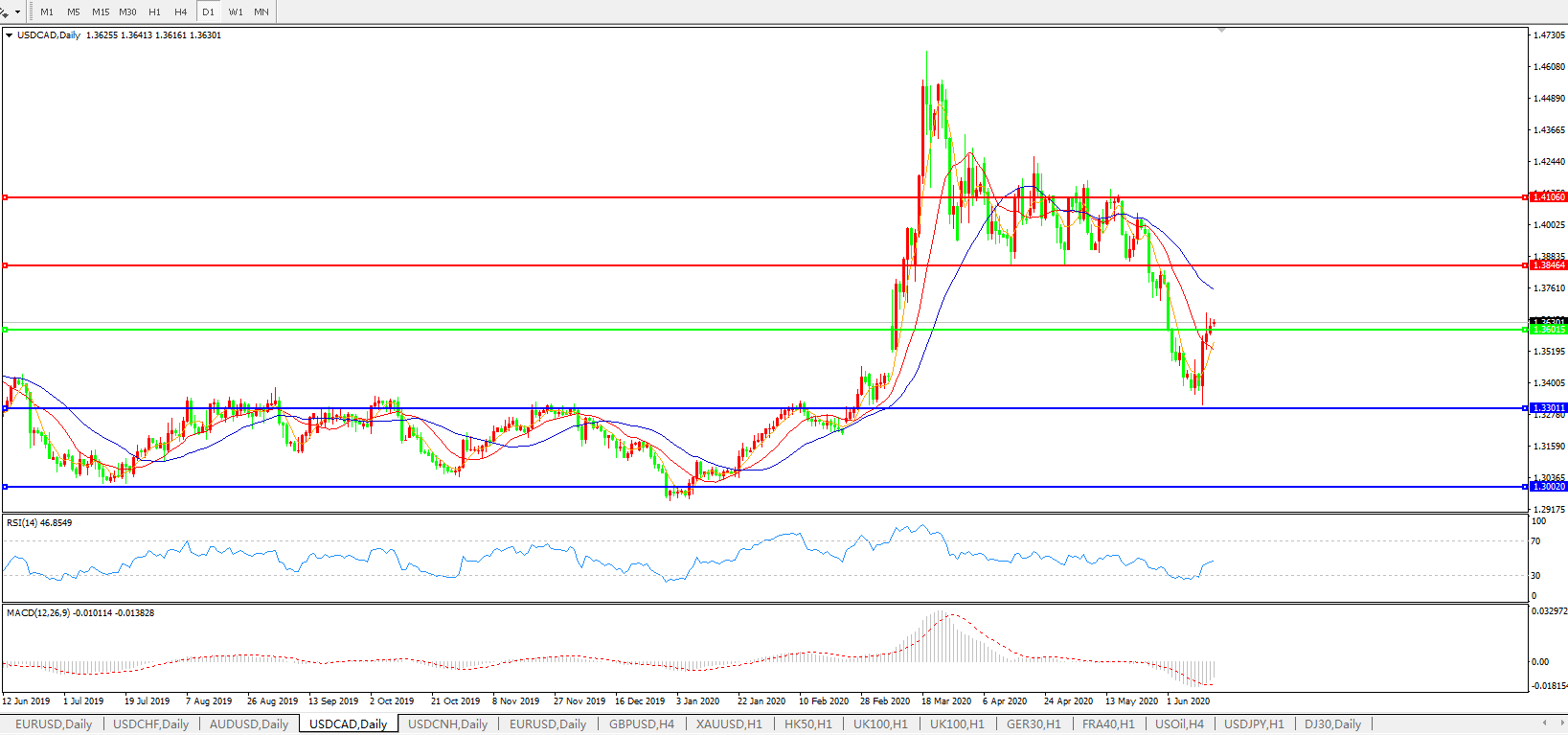 美元兑加元USDCAD    日线图: