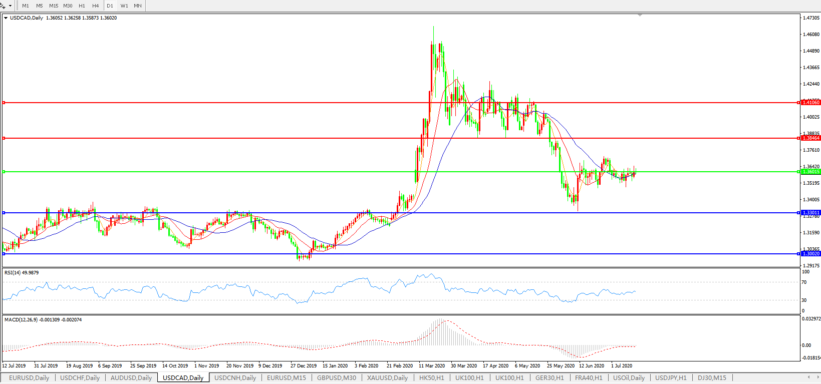 美元兑加元USDCAD    日线图: