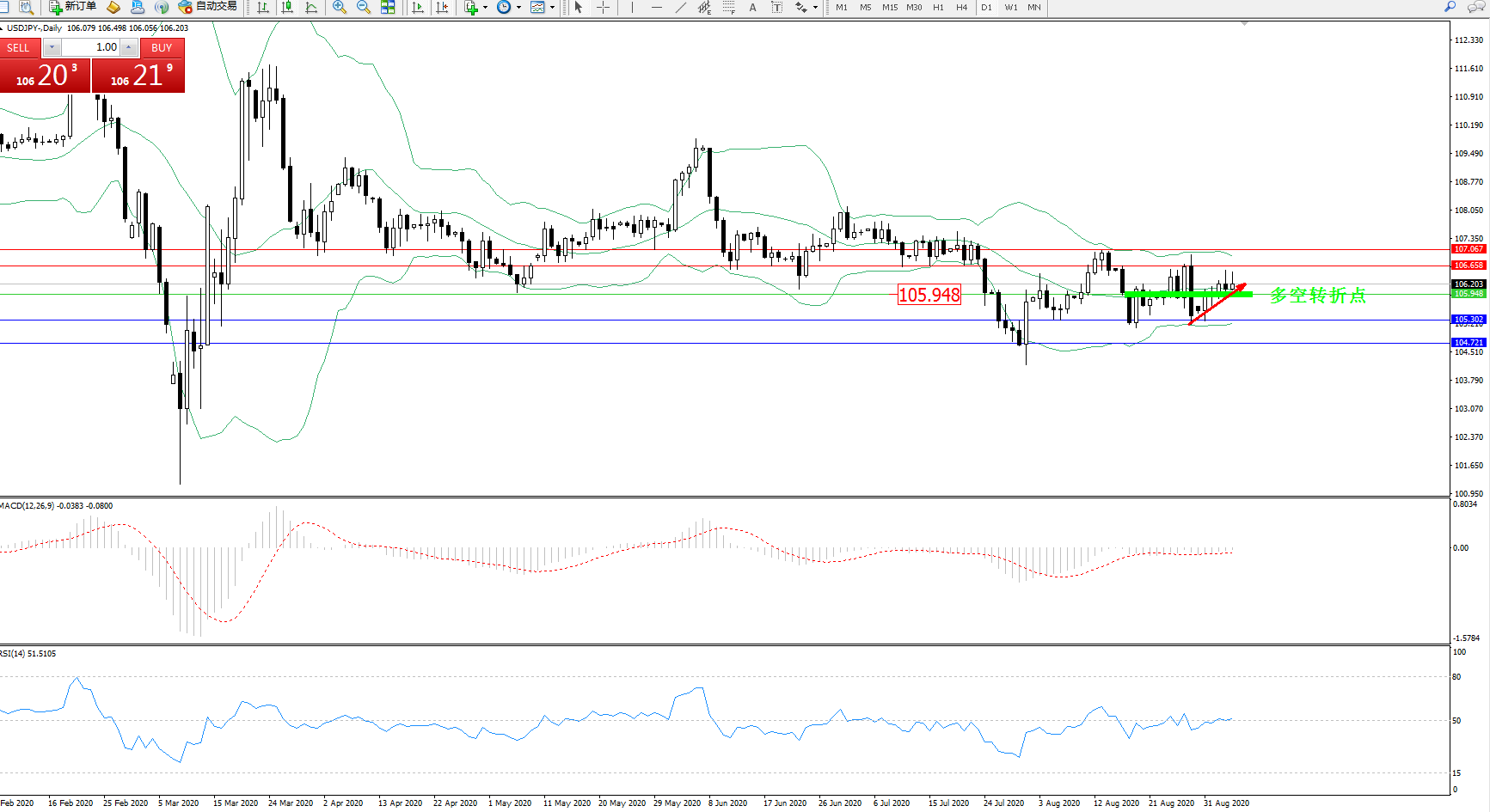 多空转折点:105.948