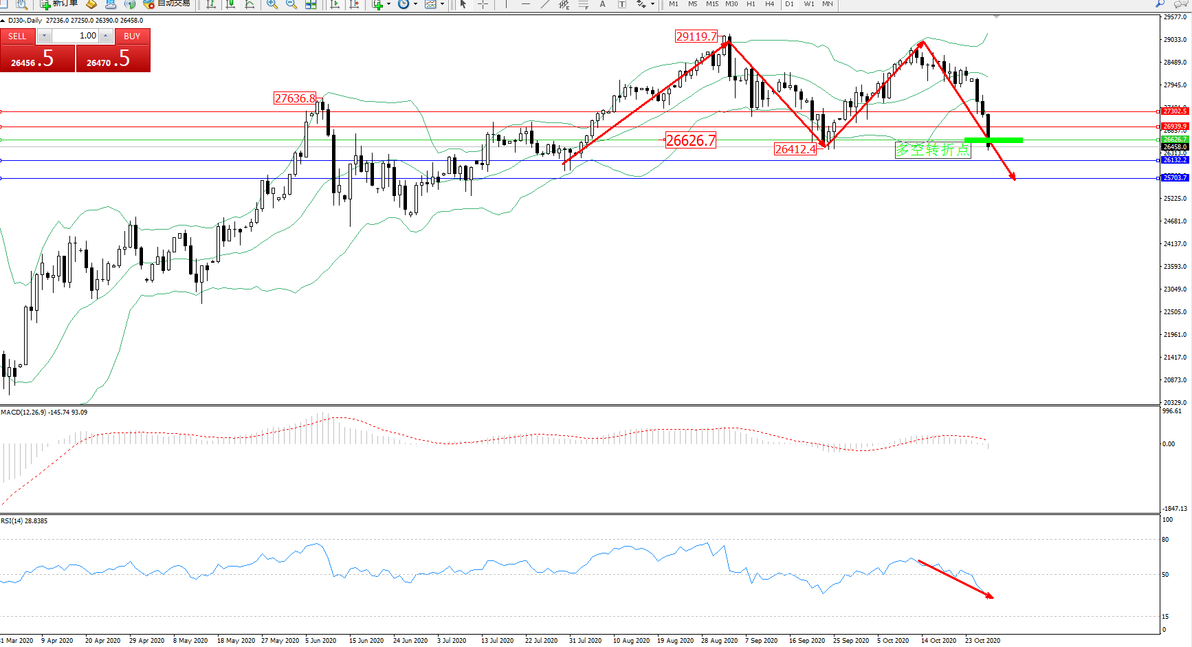 道琼斯指数DJ30—— 日K线图显示: