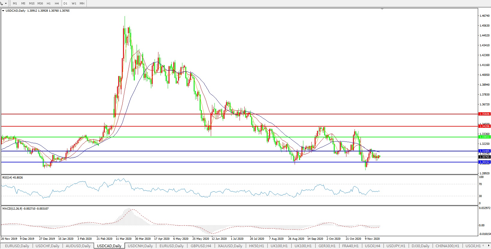 美元兑加元USDCAD    日线图: