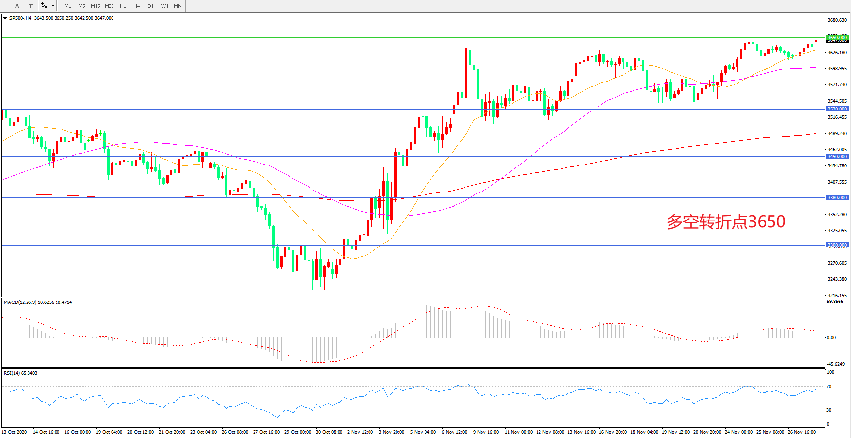 多空转折点:3650.00
