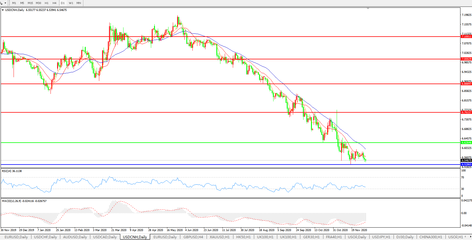 美元兑人民币USDCNH    日线图: