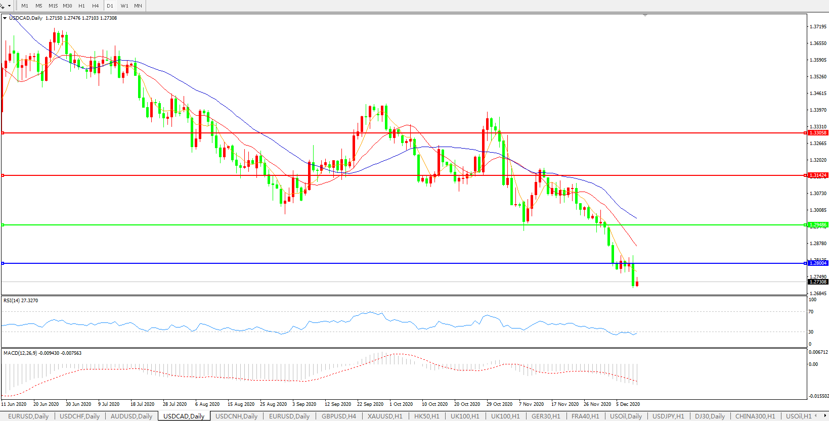 美元兑加元USDCAD    日线图: